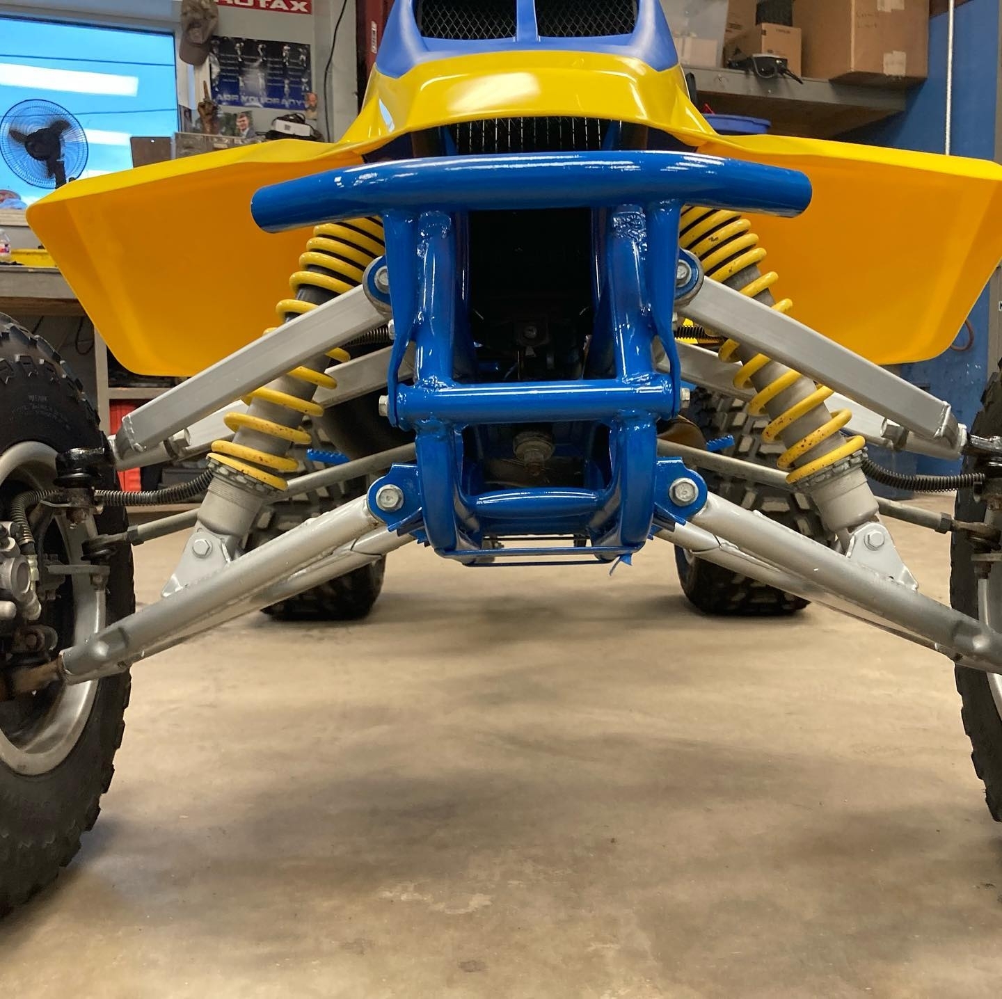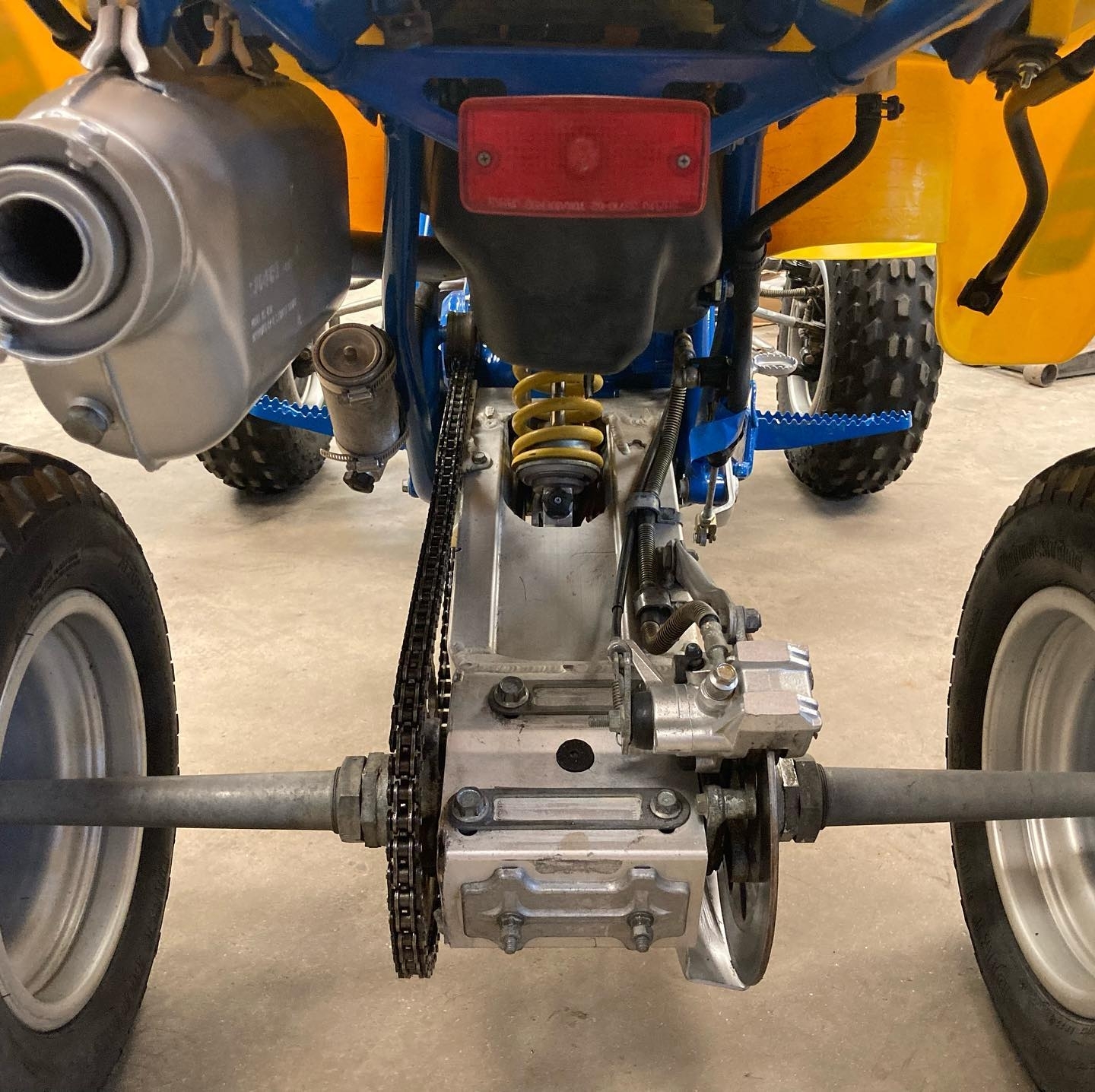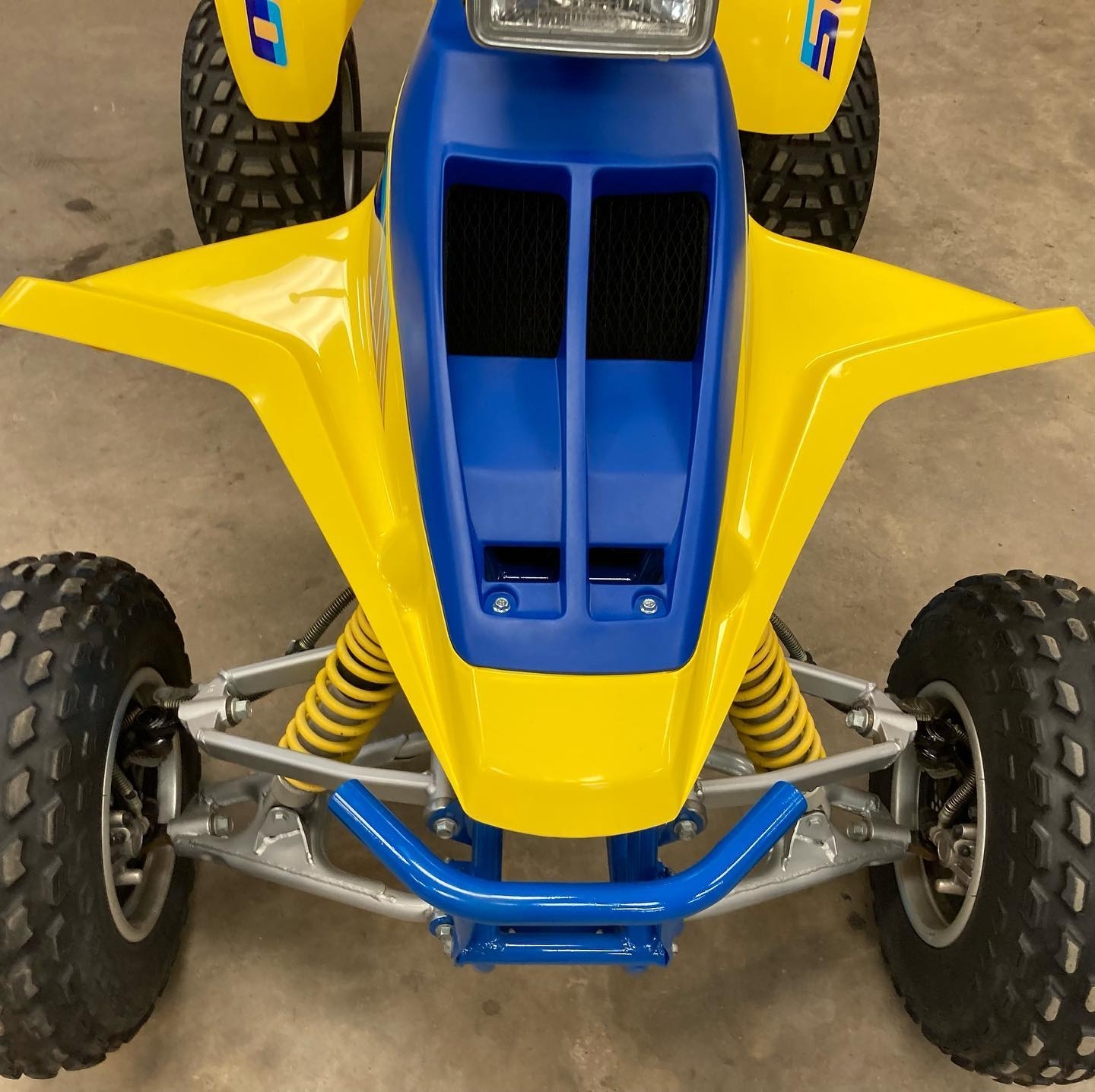 The chassis of the 1987 LT500 QuadZilla features a strong tubular steel frame designed to handle the engine’s immense output. While heavier than smaller sport ATVs, the QuadZilla’s frame provides stability at high speeds and during hard acceleration. Its wide stance and long wheelbase contribute to straight-line stability, making it especially effective in open terrain and sand dunes.