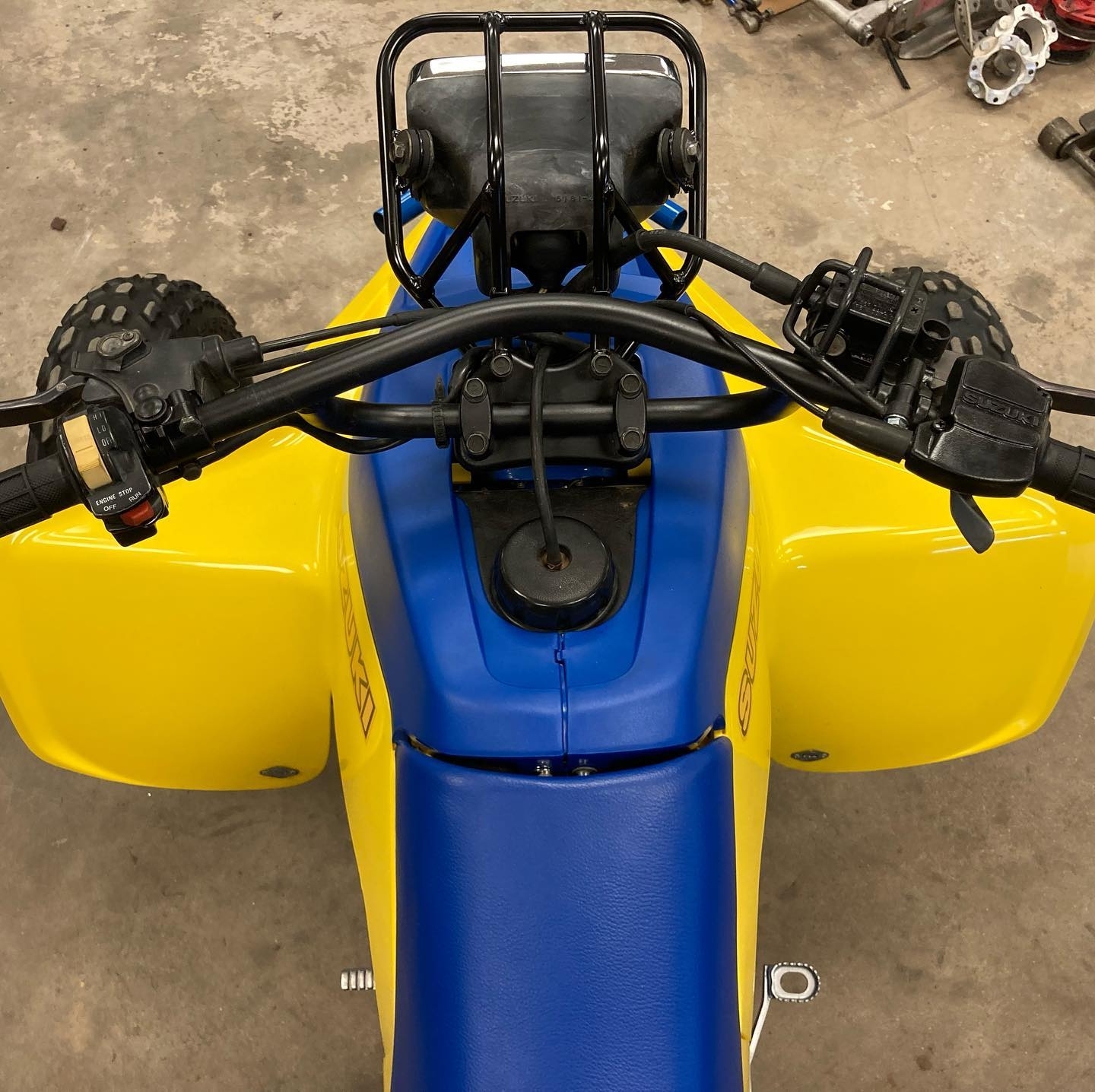 Suspension on the 1987 Suzuki LT500 consists of dual A-arm front suspension and a rear swingarm with a single shock. For its time, this suspension setup was considered advanced and capable of handling aggressive riding. While modern suspension technology has surpassed it, the QuadZilla’s suspension remains functional and is highly upgradeable, with many aftermarket options available for riders seeking improved handling and comfort.