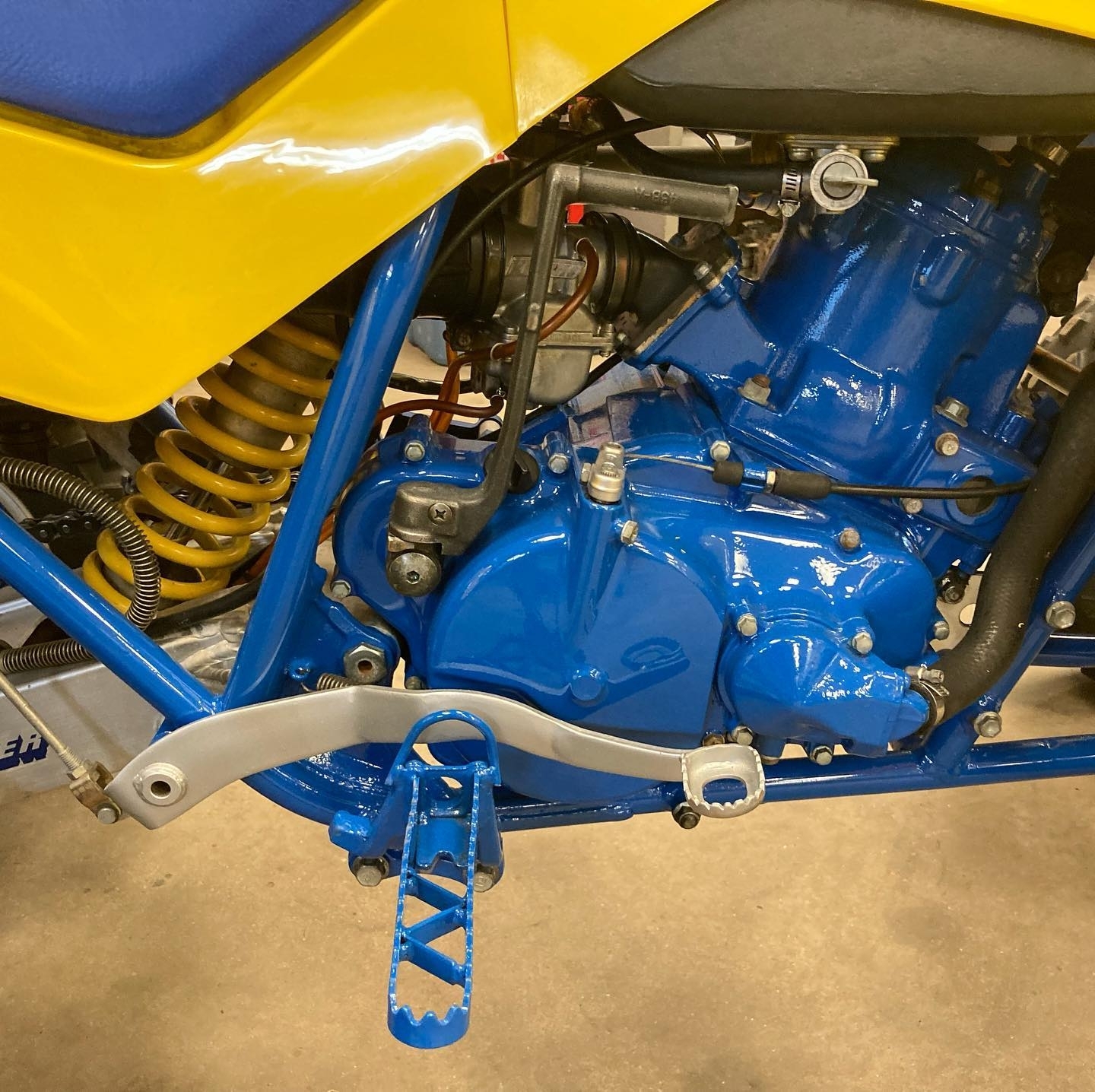 At the heart of the 1987 Suzuki LT500 QuadZilla is a massive 498cc liquid-cooled, two-stroke single-cylinder engine. This engine was revolutionary in the ATV market, delivering incredible torque, blistering acceleration, and a top-end rush that shocked riders in the late 1980s. Producing power levels that rivaled small motorcycles, the QuadZilla earned its fearsome nickname through sheer performance alone. The two-stroke design allowed for a high power-to-weight ratio, making the LT500 one of the fastest ATVs of its era.
