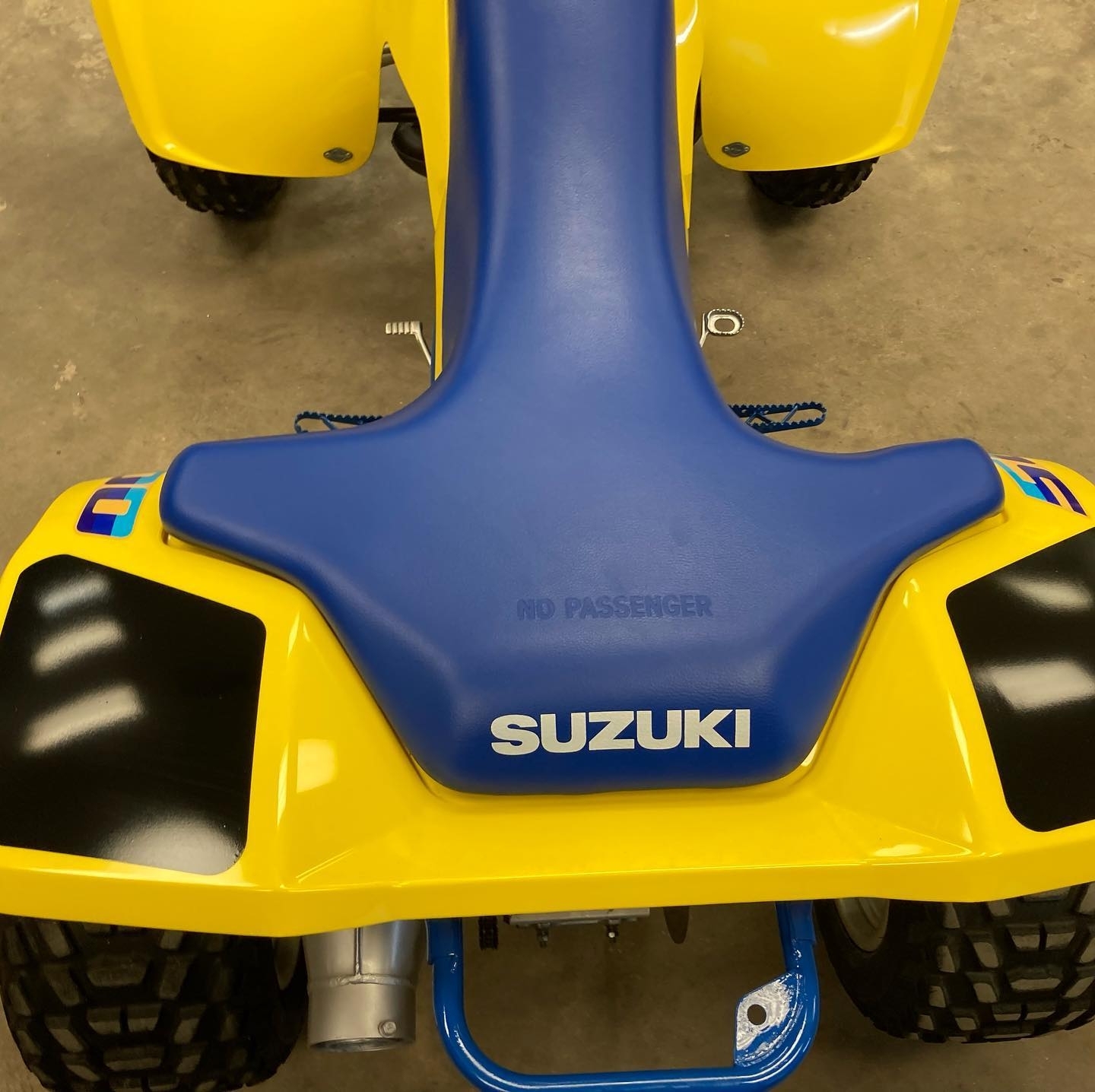 One of the most distinctive features of the 1987 Suzuki LT500 QuadZilla is its bold and aggressive design. The oversized engine, wide bodywork, and muscular stance give it an unmistakable presence. The LT500 looks as powerful as it performs, and its unique styling has become iconic among vintage ATV enthusiasts. Its large expansion chamber exhaust system further emphasizes its performance-focused nature.