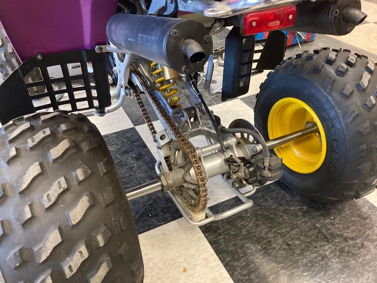 The lightweight tubular steel frame plays a major role in the Banshee’s sharp handling and agility. Designed for aggressive sport riding, the chassis offers excellent balance and stability at high speeds. The double wishbone front suspension and rear monoshock absorb bumps and uneven terrain while maintaining control during cornering and acceleration. Whether riding trails, open terrain, or sand dunes, the 1995 Yamaha Banshee delivers confident handling and predictable performance.