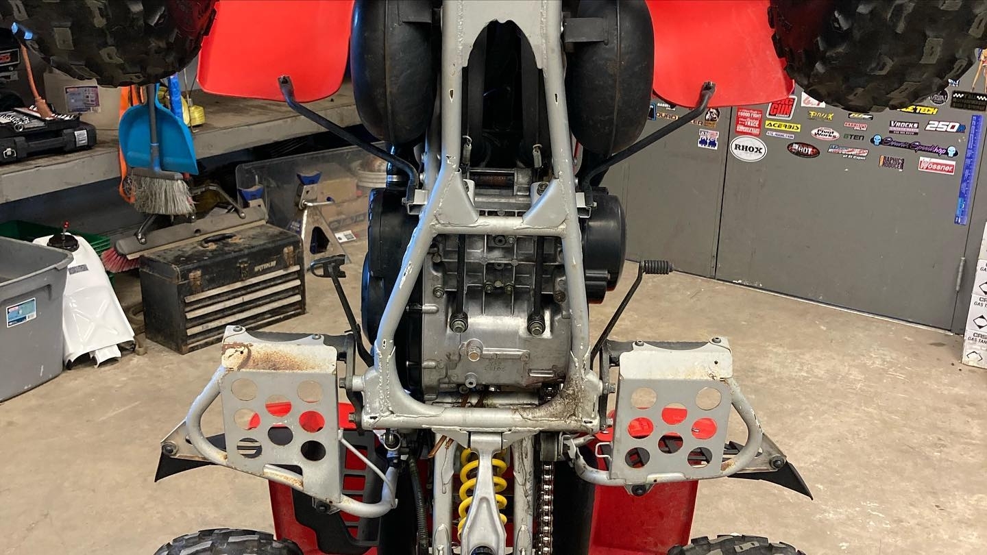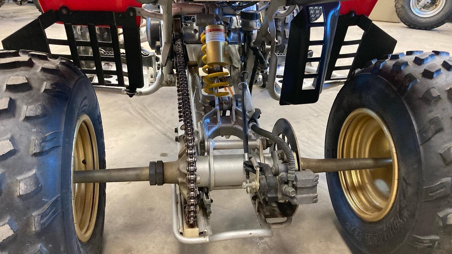 The suspension system features a double wishbone front suspension paired with a rear monoshock, offering controlled travel over rough terrain. While suspension technology has evolved since the 1990s, the Banshee’s setup remains capable and highly upgradeable. Many riders enhance the suspension with modern components, further improving performance for dunes, trails, or racing.