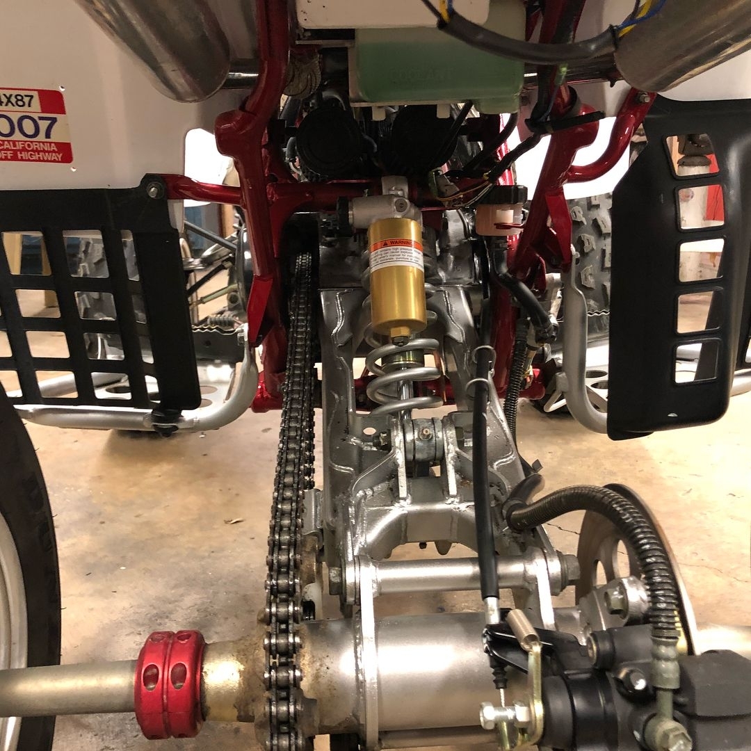 Fuel delivery is managed by dual carburetors, ensuring crisp and consistent throttle response. The engine is paired with a 6-speed manual transmission, allowing riders to fully utilize the engine’s aggressive powerband. The manual clutch and close-ratio gearbox provide a fully engaged riding experience, making the 2004 Yamaha Banshee especially appealing to experienced riders who value control and performance.